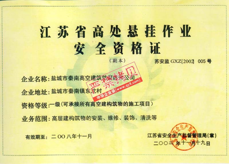 商業(yè)機(jī)會(huì) 產(chǎn)品大全 企業(yè)名錄 我商務(wù)中心 | 網(wǎng)址:ydgk66.qy6.com 安全資格證_鹽城藍(lán)翔高空建筑防腐維修有限公司 手機(jī)站