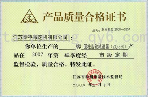 網(wǎng)址:taiyulong.qy6.com 產(chǎn)品質(zhì)量合格證書1_江蘇泰宇減速機(jī)有限公司