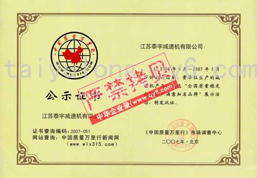 網(wǎng)址:taiyulong.qy6.com 公示證書_江蘇泰宇減速機有限公司